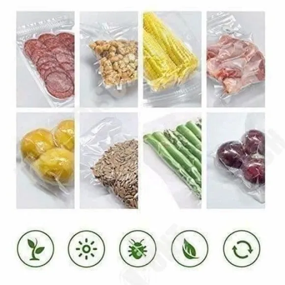 Upptäck LUNAVOs vågiga vakuumförpackningar, idealiska för vakuumförpackning. De är 28 cm breda och 5 meter långa, och de är kompatibla med alla vakuummaskiner. Tillverkade utan BPA, garanterar de optimal skydd av dina livsmedel.