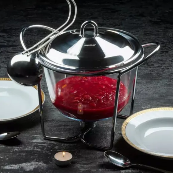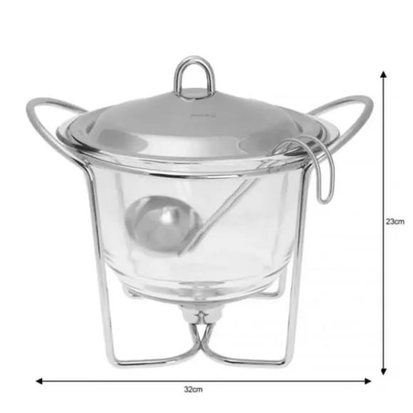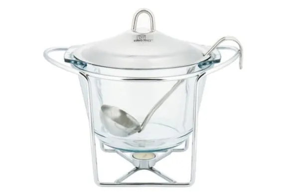 Du kan ställa ett fat direkt från köket på bordet i ett elegant värmetåligt fat med lock. Tack vare värmeljusvärmare blir maten varm hela tiden och du kan ägna din tid åt dina gäster. Kärlet är tillverkat av värmebeständigt glas (PYREX). Lock och ram tillverkade av utmärkt 18/10 rostfritt stål. Det PYREX värmebeständiga glaset som används är utformat för att fungera i temperaturområdet -25° / +260°. Alla delar av setet kan tvättas separat, vilket gör att du enkelt kan hålla det rent: 4,10 L. Glasinsatsen kan användas i mikrovågor Lock av högkvalitativt 18/10 rostfritt stål. Polerad täckyta. Ett värmande ljus.