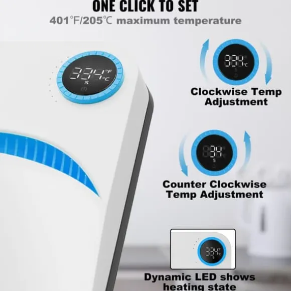 Vrid ratten åt höger för att ställa in temperaturen och vrid den åt vänster för att ställa in tiden. Jämfört med gammaldags värmepressar kommer vår bärbara värmepress med 9 LED-indikatorer och en stor digital display, som ger en snabb sammanfattning av temperatur och tidstillstånd. Njut av varje operation och process med tillförsikt. Det här är din tid att koppla av!