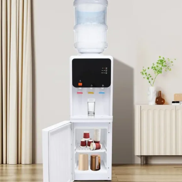 Elegant vit golvstående vattenautomatDenna fristående vattenautomat i vitt levererar både hett och kallt vatten för hem, kontor och väntrum. Med snabb uppvärmning, effektiv kylning och EU-kontakt erbjuder den bekvämlighet och ett stilrent uttryck som passar in i alla miljöer.