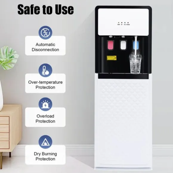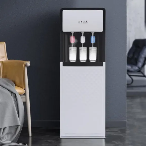 Golvr stående vattenautomat i vittEn pålitlig vattenautomat i vitt som ger hett, kallt och rumstempererat vatten via tre separata utlopp. Med 500 W uppvärmning, 90 W kylning och smidig bottom-loading är den perfekt för kontor och hem.
