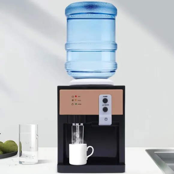 Den toppmatade konstruktionen gör flaskbyten enkla och läckagesäkra. Kompatibilitet med 3.5L, 5L, 10L och 18.9L vattenbehållare ger flexibilitet oavsett om den står på skrivbordet, nattduksbordet eller i pentryt.
