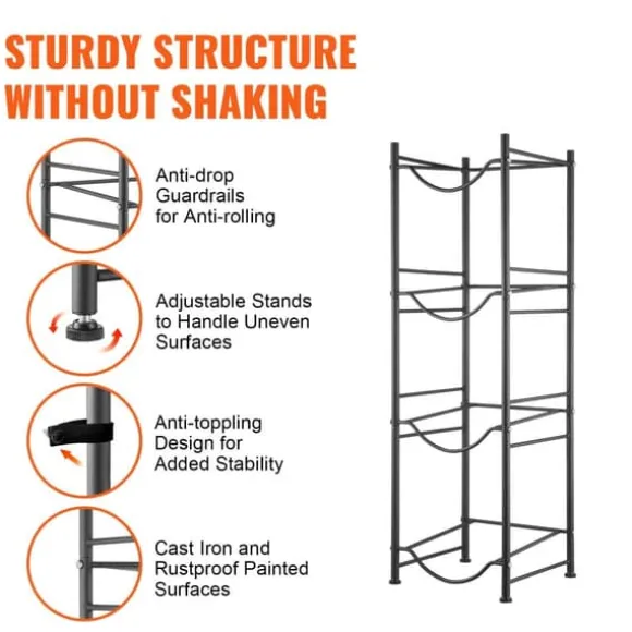 Denna vattenkannahållare med fyra nivåer mäter 13 x 13 x 41,2 tum. Dess vertikala design rymmer upp till 4 flaskor och stöder upp till 167,6 lbs. Det sparar utrymme genom att stapla flaskor snyggt i ett hörn. Dess enkla industriella design kompletterar olika inredningsstilar, vilket gör den idealisk för alla utrymmen!