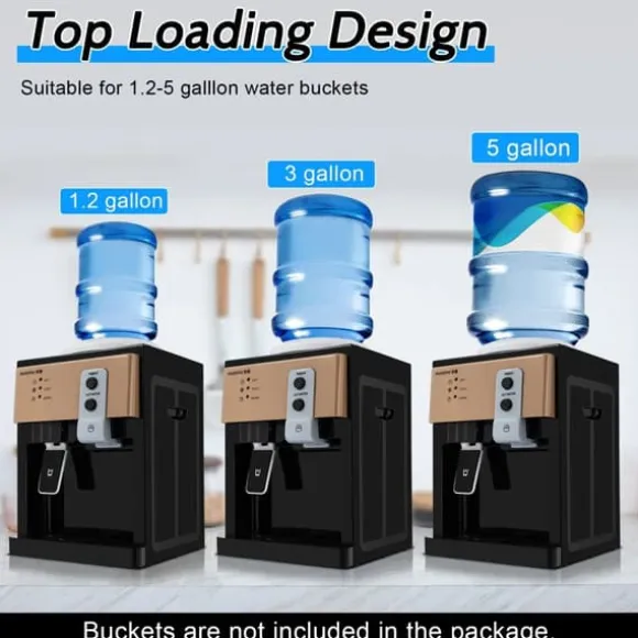 Toppmatad vattenautomat med 3 temperaturer – Champagne Få varmt, kallt eller ljummet vatten med ett knapptryck. Den här lättanvända dispensern passar perfekt för te, kaffe eller svalkande drycker och är enkel att rengöra tack vare avtagbara delar samt smidig enhandsanvändning.