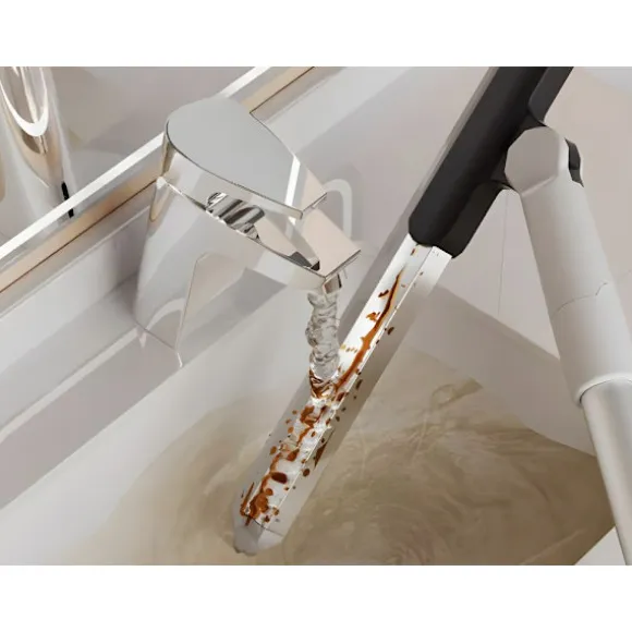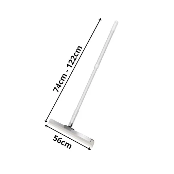 Utrustad med en robust, utdragbar teleskopisk stav, gör att du kan arbeta bekvämt utan att böja dig och enkelt nå svåråtkomliga platser. Det rörliga huvudet med en led möjliggör att ställa in rätt lutningsvinkel, vilket säkerställer noggrann rengöring även i hörn och kanter.