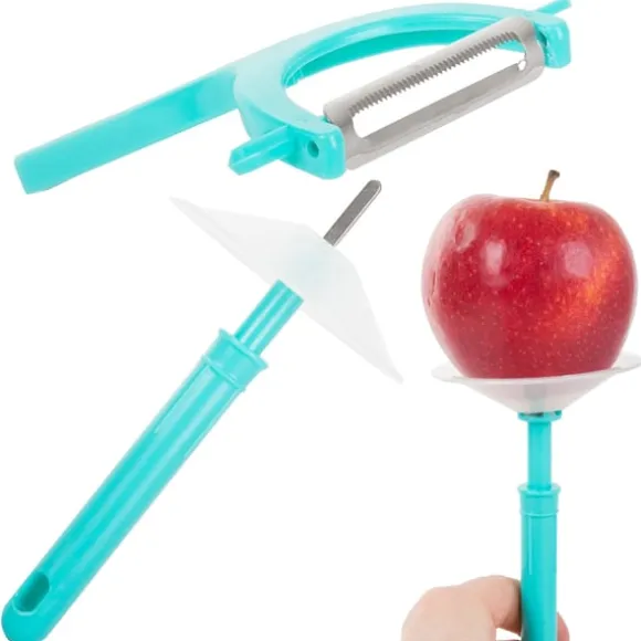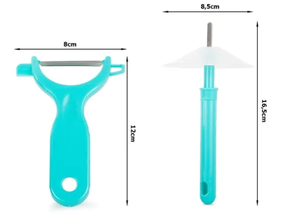 En mångsidig skalare för att skala grönsaker och frukt. Kniven är utrustad med ettskarpt blad som kommer att säkerställa utmärkt skärprestanda under lång tid. Den har också enspeciell handtag med en speciell knopp som förhindrar att händerna blir smutsiga vid skalning.