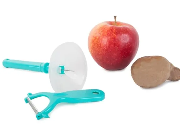 Skalarensrörliga blad anpassar sig till grönsakens form som ska skalas. Skalet är lämpligt för skalning av grönsaker och frukter med mjuka och hårda skal.
