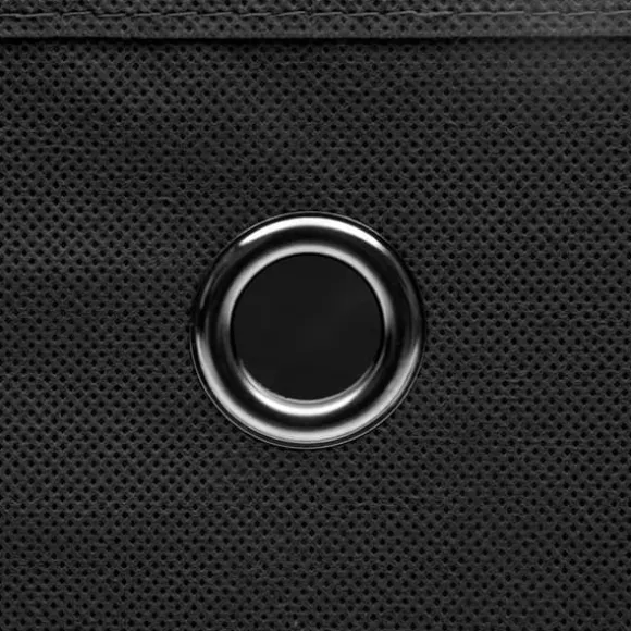 De praktiska förvaringslådorna är tillverkade i nonwoven tyg som gör dem hållbara. Varje låda har ett lock som håller innehållet rent. Varje förvaringslåda har dessutom en praktisk öljett i metall så att du kan dra ut dem från garderoben, hyllan eller skåpet. När de inte används kan förvaringslådorna vikas ihop för att spara utrymme.