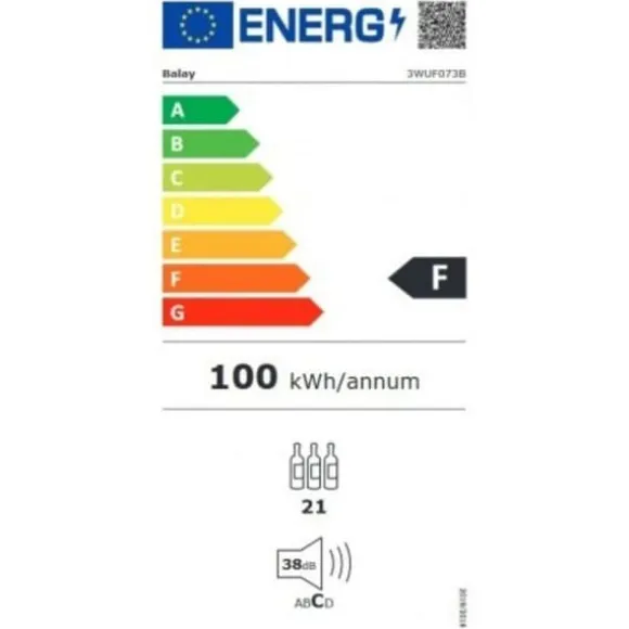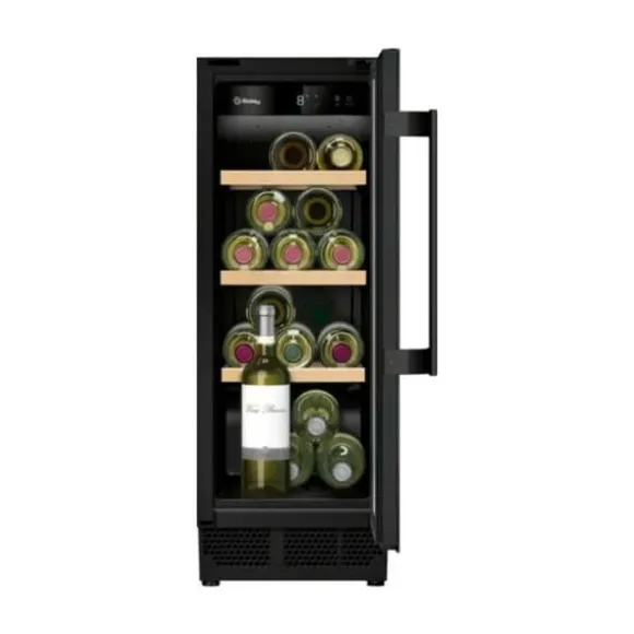 Denna vinkyl BALAY 3WUF073B, med en kapacitet på 20 flaskor, installeras under bänkskivan. Den har en inbyggd belysning, en integrerad skärm och en pekskontroll. Med måtten 82 x 30 x 57 cm och en elegant svart finish är den idealisk för vinälskare.