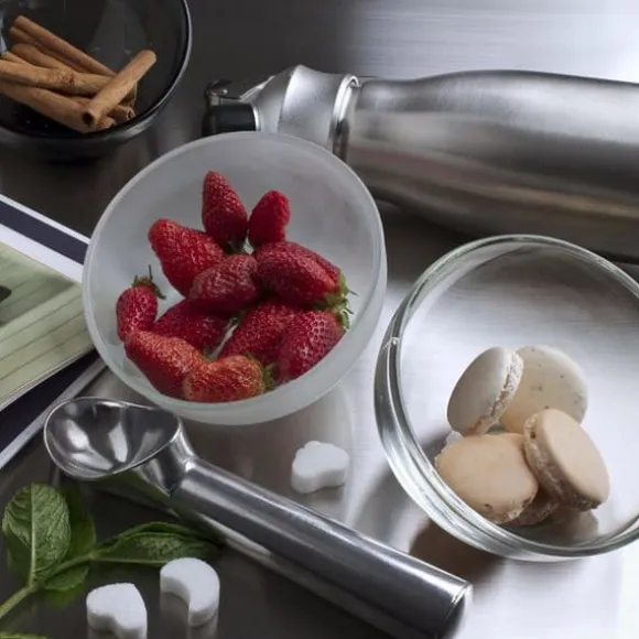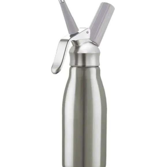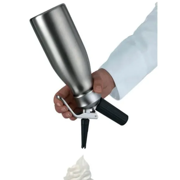 Gör enkelt din grädde och espuma med KAYSER 0,5L-sifonen. Tillverkad i rostfritt stål och aluminium, håller den dina förberedelser i upp till 2 veckor i kylskåp. Perfekt för söta eller salta recept, den levereras med 2 munstycken. För endast hushållsbruk.