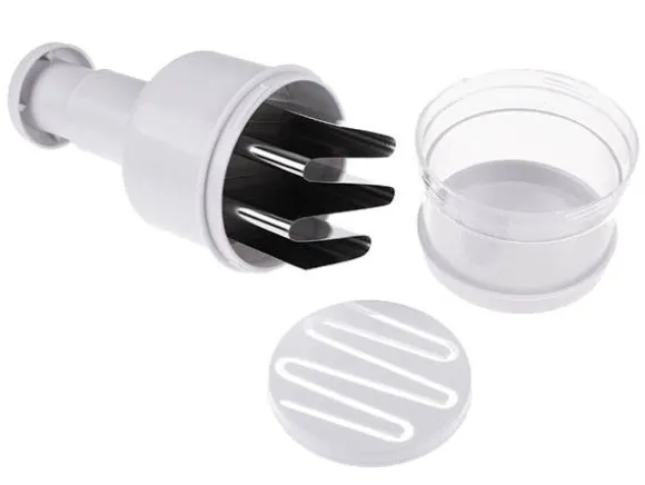 Med ett enkelt tryck aktiveras sex vassa blad som hackar med automatisk rotation. Varje tryck får bladen att sänkas och rotera, vilket effektivt strimlar innehållet till önskad storlek. Konstruktionen är anpassad för enkel rengöring och smidig hantering, vilket gör den idealisk för daglig användning. Ett oumbärligt verktyg för dig som vill laga mat snabbt, enkelt och med proffsigt resultat.