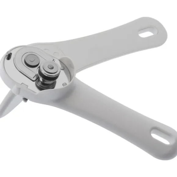 Med denna pålitliga konservöppnare kan du öppna burkar utan ansträngning – och utan risk för skador! Placera bara öppnaren horisontellt på burkens kant, tryck ihop spakarna och vrid på vredet – skärhjulet rör sig längs burken och öppnar locket utan vassa kanter! Locket kan enkelt tas bort med en tång och sättas tillbaka för att stänga burken. Färg: vit.