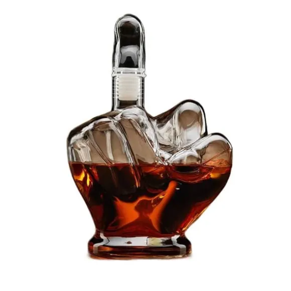 Ibland behöver vi alla en hjälpande hand, och ibland behöver vissa bara ett väldigt specifikt finger. Den här karaffen är inte bara en behållare för din favoritdryck, det är också en rolig pryl som visar alla vad du egentligen tänker. Karaffen är tillverkad av borosilikatglas och rymmer en liter av din favoritdryck, och med det avtagbara långfingret som fungerar som propp kommer den garanterat att bli ett provocerande mittpunkt i vilken hemmabar som helst! Placera den på ett bord eller en hylla och njut av dina gästers reaktioner! Den här karaffen är en utmärkt present till någon med humor eller någon som har irriterat dig på något sätt. Låt denna karaff tala för sig själv! Specifikationer: Karaff med finger Material: borosilikatglas Kapacitet: 1 liter Diska karaffen med varmt vatten och diskmedel före första användningen.