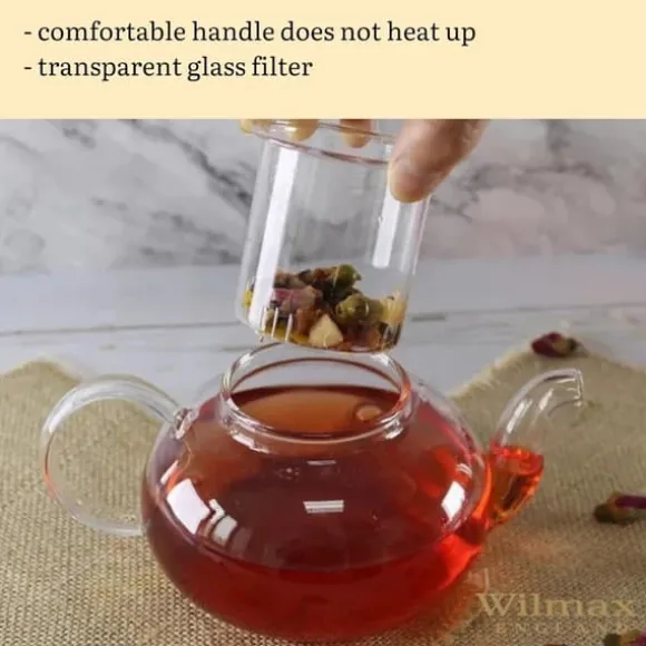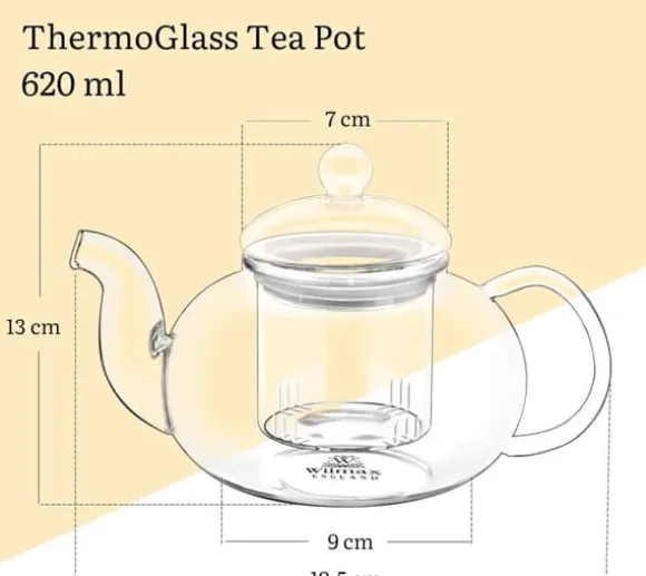 Brygg löste som det ska i Wilmax tekanna 620 ml från Thermo Glass. Den helt transparenta kannan låter dig se tebladens dans och färgens djup, medan glasfiltret fångar upp blad och frukt för en klar kopp. Kannan är tillverkad i värmetåligt glas och kan användas direkt på gas- eller elspis för uppkok och bryggning. Glaset är lukt- och smakneutralt och tål diskmaskin, vilket gör den enkel att hålla fräsch. En droppsnål pip och bekvämt handtag ger kontrollerad servering – perfekt för blommande te, örtte och klassiska sorter