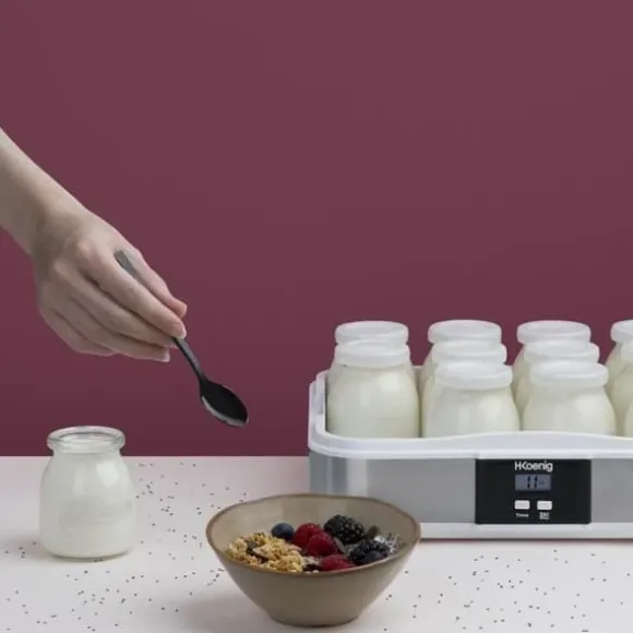 Gör läckra hemmagjorda yoghurtar med ELY120 yoghurtmaskinen! Denna yoghurtmaskin är programmerbar i upp till 15 timmar från LCD-skärmen och låter dig förbereda yoghurt baserad på hel, skummad, lättmjölk eller vegetabilisk mjölk enligt dina önskemål.