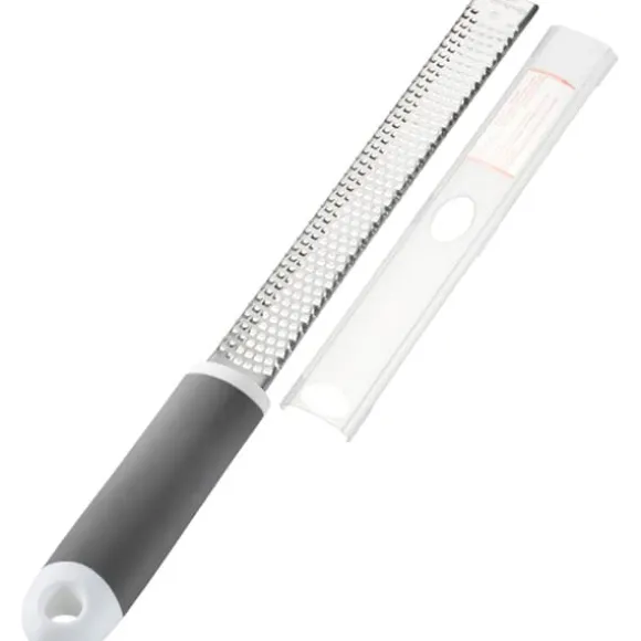 Smidigt zestjärn med etsade kanter ger rakbladsvass rivyta. Soft-griphandtag ger ett stabilt grepp. Inklusive plastskydd.