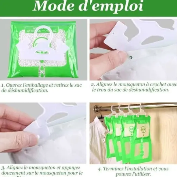 Ett paket med avfuktare är ca 80g, ca 160g fukt kan absorberas, olika luftfuktighet, användningen av tidsgränsen är inte densamma, avfuktarens användning ca 1-3 månader.