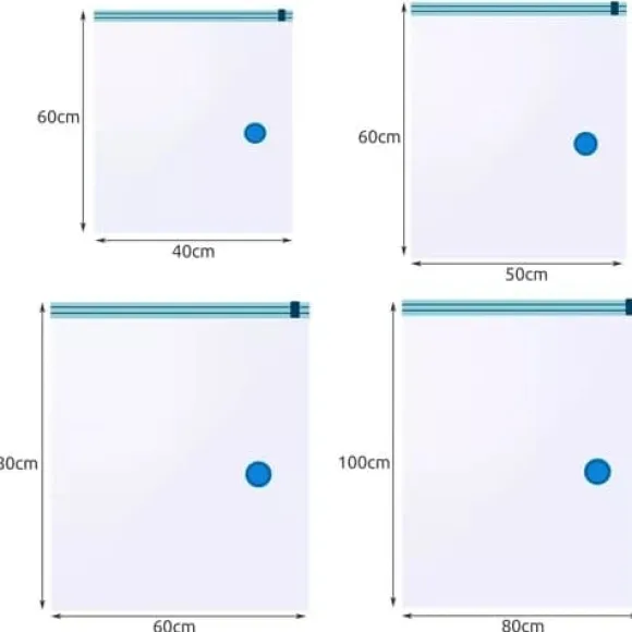 Slipp trångt i garderoben och skydda dina kläder och textilier mot damm, fukt och ovälkomna dofter med dessa smarta vakuumpåsar! Perfekt när du vill spara plats, oavsett om du packar inför en resa, ska förvara vinterkläder eller bara vill slippa röran i förrådet. Fyll påsen med det du vill, sug ut luften med en vanlig dammsugare och se hur volymen minskar med upp till 80 %. Dessa slitstarka påsar kan användas om och om igen – lika bra vid flytt som till vardags. Kläderna håller sig fräscha och skyddade, och du slipper oroa dig för vatten, smuts eller skadeinsekter. Enkelt, praktiskt och riktigt platsbesparande!