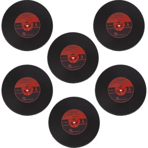 Retrounderlägg då dessa är gjorda så att de liknar en gammal klassiska vinylskiva. Betydligt roligare underlägg att ha en vanliga tråkiga. Underläggen är gjorda i plast och har en diameter på ca 10 cm. Säljs i 10-pack.