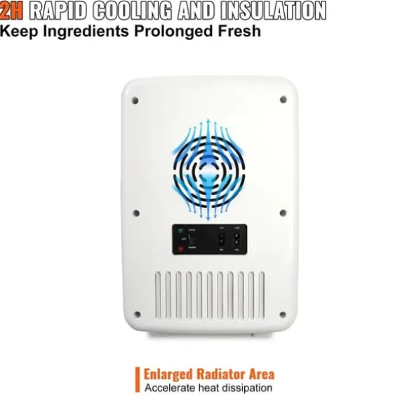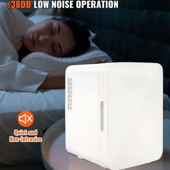 Detta 10-liters minikylskåp har varma och kalla lägen som kan fungera ner till 64,4 grader Fahrenheit och 122 grader Fahrenheit över omgivningstemperaturen. Att köra mindre än eller lika med 38db kommer inte att störa ditt liv. Detta kylskåp levereras med en hushållsnätadapter och 12V DC nätsladd, vilket gör det idealiskt för förvaring av mat, dryck, bröstmjölk, mediciner och kosmetika.