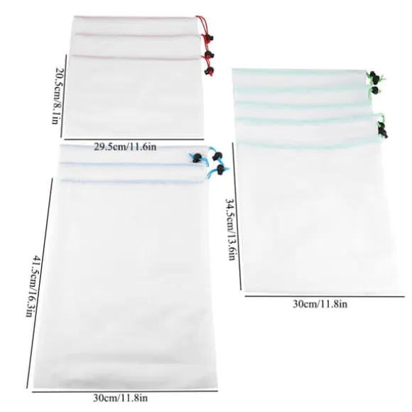 Välkommen till vår butik! Denna uppsättning återanvändbara nätpåsar är tillverkade av högkvalitativ polyester, vilket ger utmärkt andningsförmåga och är enkla att tvätta. Dessa påsar är utformade för upprepad användning och hjälper till att minska plastföroreningar. De är starka, hållbara, lätta och transparenta för bekväm synlighet av innehållet. Setet innehåller totalt 11 påsar: 3 stora, 5 medelstora och 3 små storlekar för att tillgodose olika förvaringsbehov. Varje påse har en dragskodesign för enkel öppning och stängning. Perfekt för en mängd olika användningsområden, inklusive förvaring av leksaker, frukt, grönsaker, mediciner, mynt, kablar, kosmetika och tillbehör. Perfekt för matinköp, camping, fiske, trädgårdsskörd, strandutflykter och resor. Paketet innehåller 11 fruktpåsar: 3 röda små (29,5×20,5 cm), 5 gröna medelstora (34,5×30 cm) och 3 blå stora (41,5×30 cm). Totalvikten är cirka 225 g. Nöjdhet: Våra kunder är vår högsta prioritet. Om du upptäcker några produktproblem efter att du mottagit varorna, såsom skador eller felaktig mängd varor, vänligen kontakta säljaren omedelbart. Vi gör vårt bästa för att ge dig tillfredsställande kundservice.