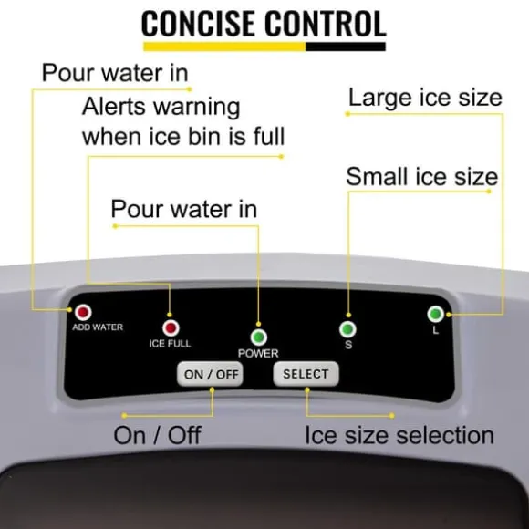 – Uppmärksamhet på detaljer: Kräver manuell påfyllning med 2,4 liters vattentank. Kvaliteten på ditt vatten och is är i din kontroll. Både ishinken och skeden är gjorda av livsmedelsklassade material. Skopan är lätt att ta bort. Stor luftvolym kondensor, snabbare värmeavledning och snabbare istillverkning.