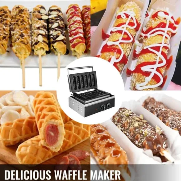 Korvvåfflorna, med en mjuk insida och krispig utsida, kan snabbt bakas av denna majshundmakare. Choklad, godis och andra dekorationer kan också läggas till för en riklig smak.