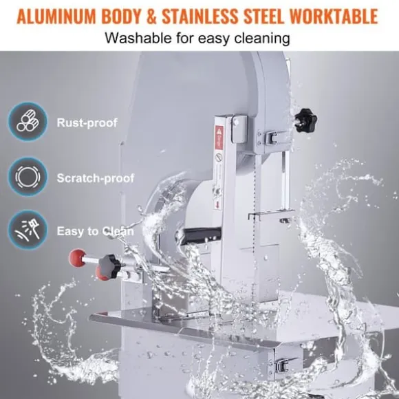 Stabil och effektiv: Den kraftfulla 1500-wattsmotorn i ren koppar erbjuder imponerande prestanda, och det skarpa sågbadet i rostfritt stål tillsammans med precisionsväxlarna ger en skärkapacitet på upp till 300 kg/h. Vår elektriska benkapsåg skär smidigt och utan att fastna, vilket gör att du enkelt kan skära igenom olika hårda ben och fryst kött med lätt tryck.