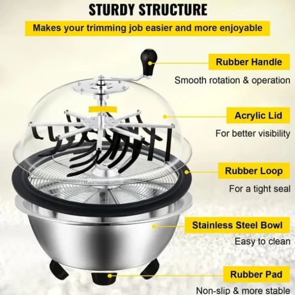 Denna knopptrimmer i rostfritt stål är gjord av högkvalitativa material och har en robust konstruktion. Genomskinligt akryllock gör att du kan se insidan medan du arbetar.