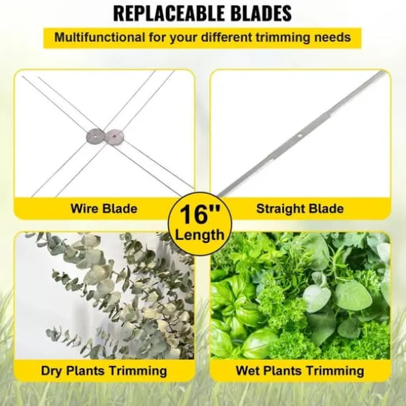 Planttrimmern är utrustad med vassa blad i rostfritt stål för att säkerställa effektivitet och minimera skador på växter. Inkluderar 4-kantigt blad för våttrimning och X-blad för torrtrimning.
