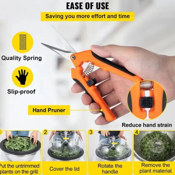 De livsmedelsgodkända gummiremsorna i denna lövskärare kan effektivt kassera växter och minimera att rester fastnar och kommer inte att skada växter. Produkten förser dig också med handbeskärare för din bekvämlighet.