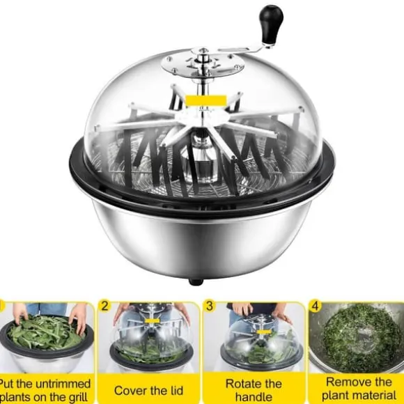 Operationen är enkel och snabb. Sätt bara i plantan, sätt på locket, vrid på handtaget så har du en trimmad planta redo för dig.