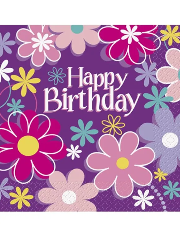 16 pappersservetter med födelsedagsmotiv, 33 x 33 cm. Size-Standard
