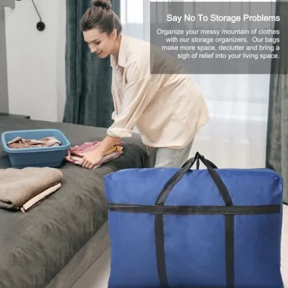 Storlek på handtagen till ultra hållbar förvaringsväska. Storlek large – 72 LX 46 H x 26 P (cm). Kapacitet 85 liter, Stor förvaringsväska som är tillräckligt rymlig för att förvara olika föremål såsom kläder, skor, filtar, sängkläder, mysiga saker.