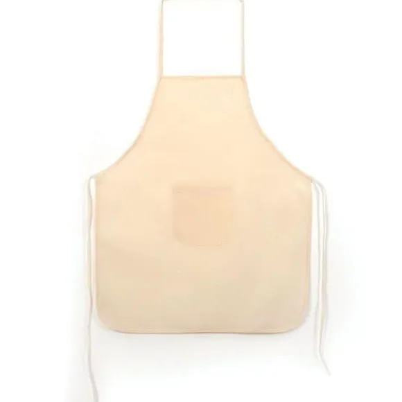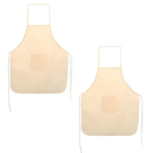 2 barnförkläden i bomull. Detta kök eller gör-det-själv-förkläde är benvitt. Barnstorlek (49 x 60 cm), den består av ett snöre runt halsen, ett knytsnöre runt midjan och en liten bukficka. Oumbärlig för alla stökiga jobb, från målning till keramik, markörer till kreativ matlagning!