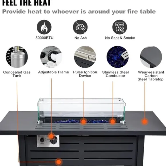 -Säker och enkel att använda: säkerhet först! Detta eldstadsbord är testat och certifierat av CSA innan det når användaren, helt enkelt för att det är rätt sak att göra. Utomhuspropanbordet är lätt att använda, allt du behöver göra är att ansluta propantanken till bordet. Hela processen är väldigt enkel och du kan slutföra den på mindre än 1 minut.