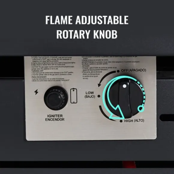 -KÄNNA VÄRMEN (50 000 BTU): Detta gasbord fungerar med en 20-punds propantank för upp till 50 000 BTU. Ger värme till alla vid ditt eldbord i cirka 9 timmar utan att lämna dig ute i kylan. Pulsantändning gör driften bekvämare. Det finns inget värre än att äta kall mat, detta kommer att säkerställa att din mat håller sig varm under hela festen.