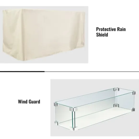 -Tänksamma tillbehör: Detta uteplats eldstadsbord kommer med ett stålöverdrag som möjliggör flera användningar av bordet, och några lavastenar för att effektivt fånga värme och minska värmespridningen. Den medföljande glasvindrutan ger en elegant tilltalande samtidigt som den håller elden igång även i lätta vindar. Den är också utrustad med en regntät mössa för ett bredare användningsområde.
