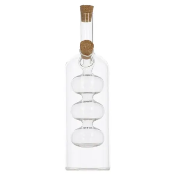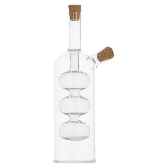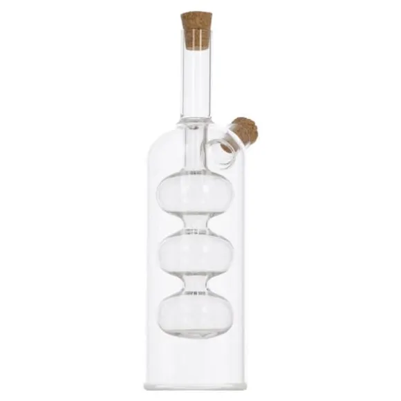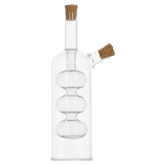 Denna 2-i-1 olja/vinägerflaska med en kapacitet på 290 ml är den perfekta lösningen för alla som letar efter en funktionell och designad kökstillbehör.. Tillverkad av högkvalitativt glas garanterar det hållbarhet och elegans som kommer att ge charm till alla bord. Den har designats med komfort i åtanke. Dess ergonomiska form gör att den ligger perfekt i handen, och det specialdesignade locket säkerställer exakt utmatning av olja eller vinäger.. Du behöver inte längre oroa dig för att hälla för mycket eller för lite – denna flaska säkerställer perfekta proportioner.