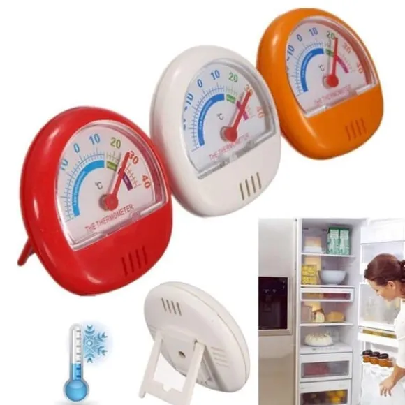 Kylskåpstermometer/frystermometer med visare. Mäter temperaturer mellan -30°C till 40°C . Termometern kan antingen placeras på en hylla i kylskåpet/frysen eller fästas på väggen. Säljs i 2-pack.