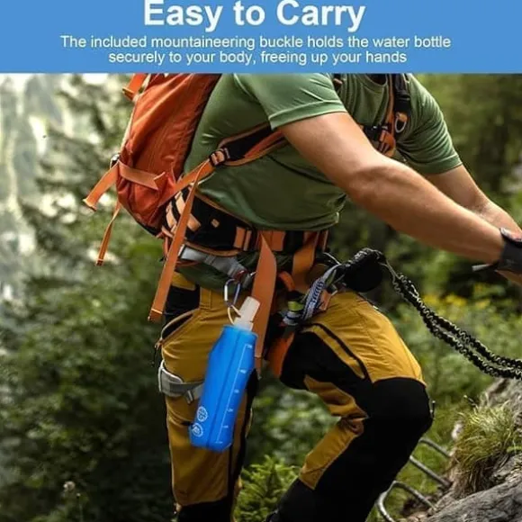 Den här uppsättningen innehåller 2 st 500 ml TPU hopfällbara vattentunnor och 2 karbinhakar, tillverkade av livsmedelsgodkänt TPU-material. Den har en matt yta som är bekväm och miljövänlig, läckageskyddad, spillfri, BPA-fri, mjuk och luktfri. Den är ofarlig för människokroppen och kan återanvändas efter noggrann rengöring, vilket sparar både pengar och miljön.