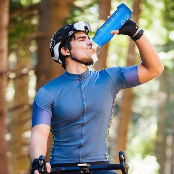 Den här flaskan är utrustad med en sugventil, vilket gör det enkelt att ta en klunk vätska med bara ett bett. På baksidan finns en nivåskala som gör det lätt att hålla koll på hur mycket vatten du har druckit och när det är dags att fylla på. TPU-hopfällbara vattentunnorna är hållbara, återanvändbara och lämpliga för långvarig användning.