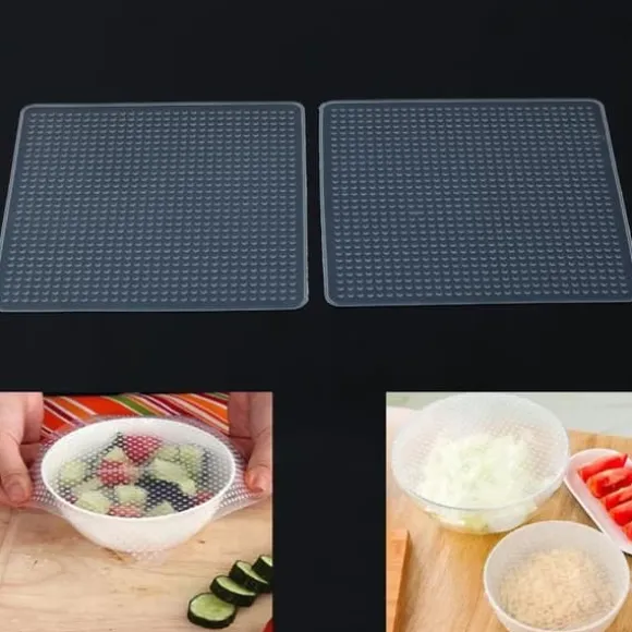 Bli först med att recensera ”2 st Återanvändbara silikonförvaringsbehållare för matomslag Tätningslock Stretch Cling Wrap konserveringsmedelsfilm Cuisi” Avbryt svar