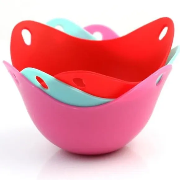 *100% Helt Ny och Av Hög Kvalitet! *utan ansträngning pocherade ägg *praktisk och enkel stil *material: Silikon *enkel att rengöra och diskmaskinssäker *färger: slumpmässig färg *Värmebeständig upp till 230 Grader C. *kommer inte att repa Inte Bygga