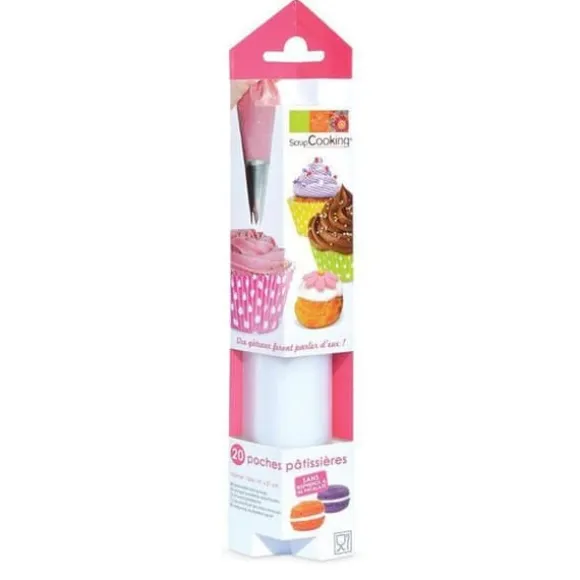 För bagare finns det inget mer praktiskt än spritspåsar! Inga fler behov av att tvätta efter användning, dessa 20 spritspåsar är engångs. De gör det möjligt för dig att spritsa och dekorera alla dina efterrätter och bakverk. Varje spritspåse mäter 41 x 21 cm. Kvantitet: 20 engångsspritspåsar. Upptäck alla tyllar som kan användas med spritspåsarna: för fyllning, till biskvi, till Saint-Honoré, till profiteroles…