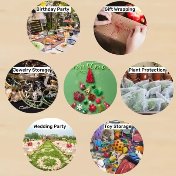 Bred användning: Dessa organzapåsar kan användas för att förvara mat, slå in presenter, förvara på resor och förvara vissa föremål som snacks, gräddburkar, smycken, mynt, festgodis, frakttillbehör eller andra små metalldelar. Du kan förvara dagliga nödvändigheter.