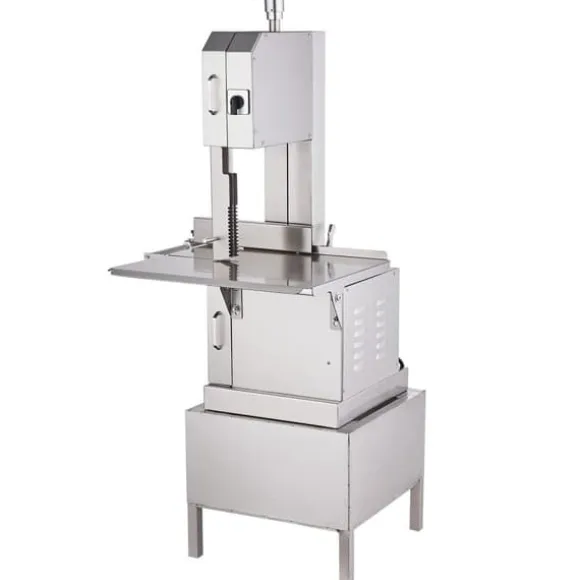 Precis och jämn: Arbetsbordet av rostfritt stål erbjuder en skäryta med precisa skalenheter. Detta gör att den önskade tjockleken kan justeras med högre noggrannhet vid behov. Den kommersiella benknivsmaskinen kan hantera stora bitar av lamm- och nötköttsben. Skärtjockleken kan justeras från 4 till 220 mm, vilket ger utmärkta resultat både för tunna skinkskivor och tjocka benbitar.