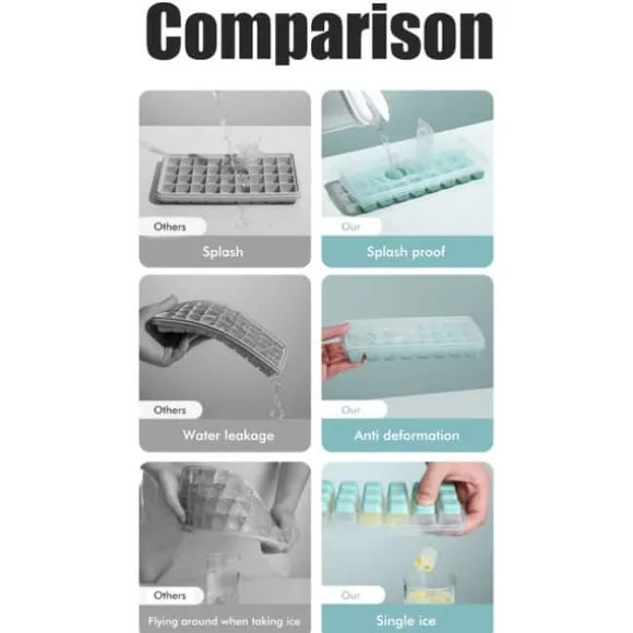 3、 Inte lätt att deformera: Det nya lufttäta locket med flip-top kan förhindra vatten från att stänka och förhindra lukt av kylskåp. Den lilla iskubsbrickan är förhöjd och förstärkt för att förhindra översvämning och deformation.