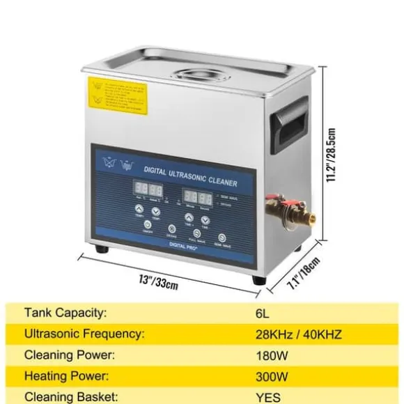 – Högkvalitativt material: Tankstorlek: 6L; Ingång: 220V; Givarkvantitet: 3 set; Ultraljudseffekt: 180W; Ultraljudsfrekvens: 28/40KHz; Värmeeffekt: 300W. Tillverkad av högkvalitativt rostfritt stål, det är starkt, korrosionsskyddande, rostsäkert, vattentätt och har en längre livslängd.