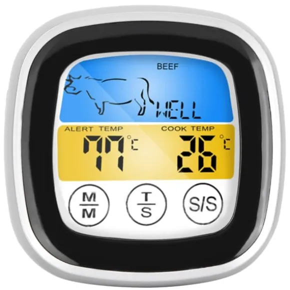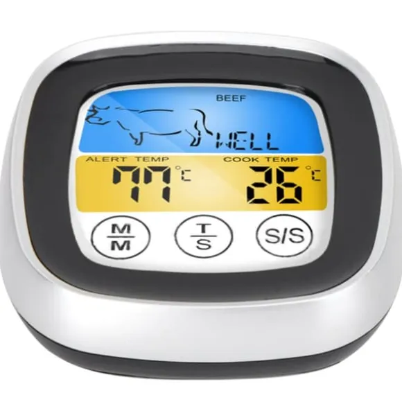 Välkommen till vår butik! Denna sondtermometer är utformad för att doppas eller stickas in i föremål för att noggrant mäta matens innertemperatur. Den har en LED-display och temperaturtabell, vilket gör att du kan fjärrövervaka temperaturen på kött, ugnar och grillar för att säkerställa perfekt smak. Du kan enkelt växla mellan ℃ och °F-visning för att möta olika avläsningspreferenser. Perfekt för hushållsbruk, kyluppvärmning och livsmedelsindustrin, denna termometer har ett bakstycke med en konsol och magnet för enkel montering på järnmöbler, vilket frigör dina händer under användning. Viktiga specifikationer inkluderar ett mätområde på -20-300 °C, temperaturupplösning på 1 °C, temperaturfel på ±1 °C, en timer på 99:59, och den drivs med 2 x AAA-batterier (ingår ej). Produkten är tillverkad av rostfritt stål och ABS, med mått på cirka 75 x 75 x 25 mm (2,95 x 2,95 x 1 tum) och en vikt på cirka 120 g (4,2 oz). Ditt köp inkluderar 1 livsmedelstermometer, 1 bruksanvisning och 1 sensor. Nöjdhet: Våra kunder är vår högsta prioritet. Om du upptäcker några produktproblem efter att du mottagit varorna, såsom skador eller felaktig mängd varor, vänligen kontakta säljaren omedelbart. Vi gör vårt bästa för att ge dig tillfredsställande kundservice.